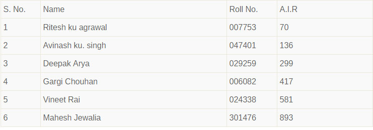 LIST OF SUCCESSFUL CANDIDATES OF UNIQUE IAS IN IAS 2012