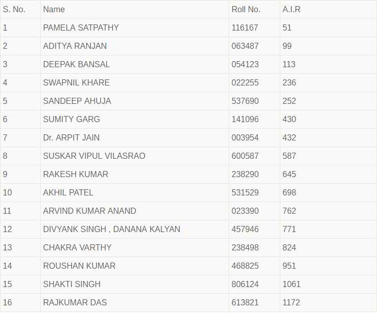 LIST OF SUCCESSFUL CANDIDATES OF UNIQUE IAS IN IAS 2015